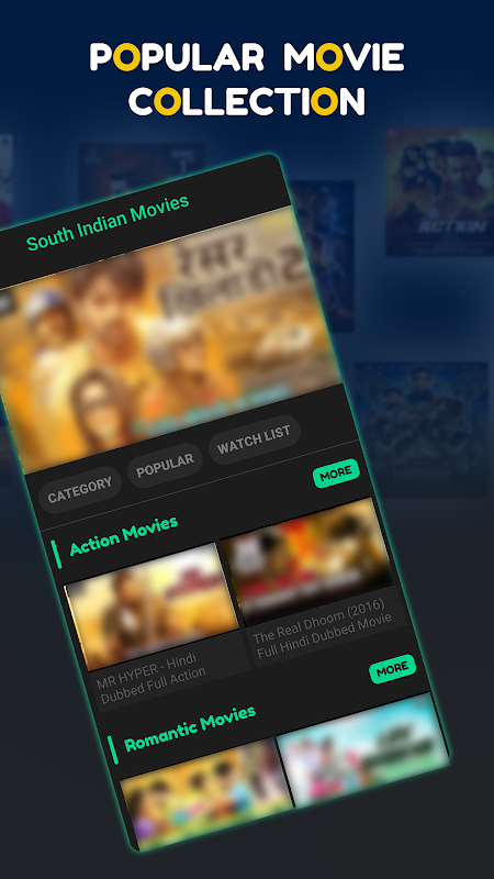 This Free Online movies app offers to watch south action Hindi dubbed movies on your mobile. This app is designed for all Full HD Movies 2020 and well categorized by Actors and Movies.