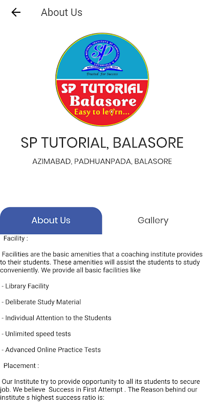 SP TUTORIAL, BALASORE cung cấp giải pháp tốt hơn cho việc Luyện thi của bạn.