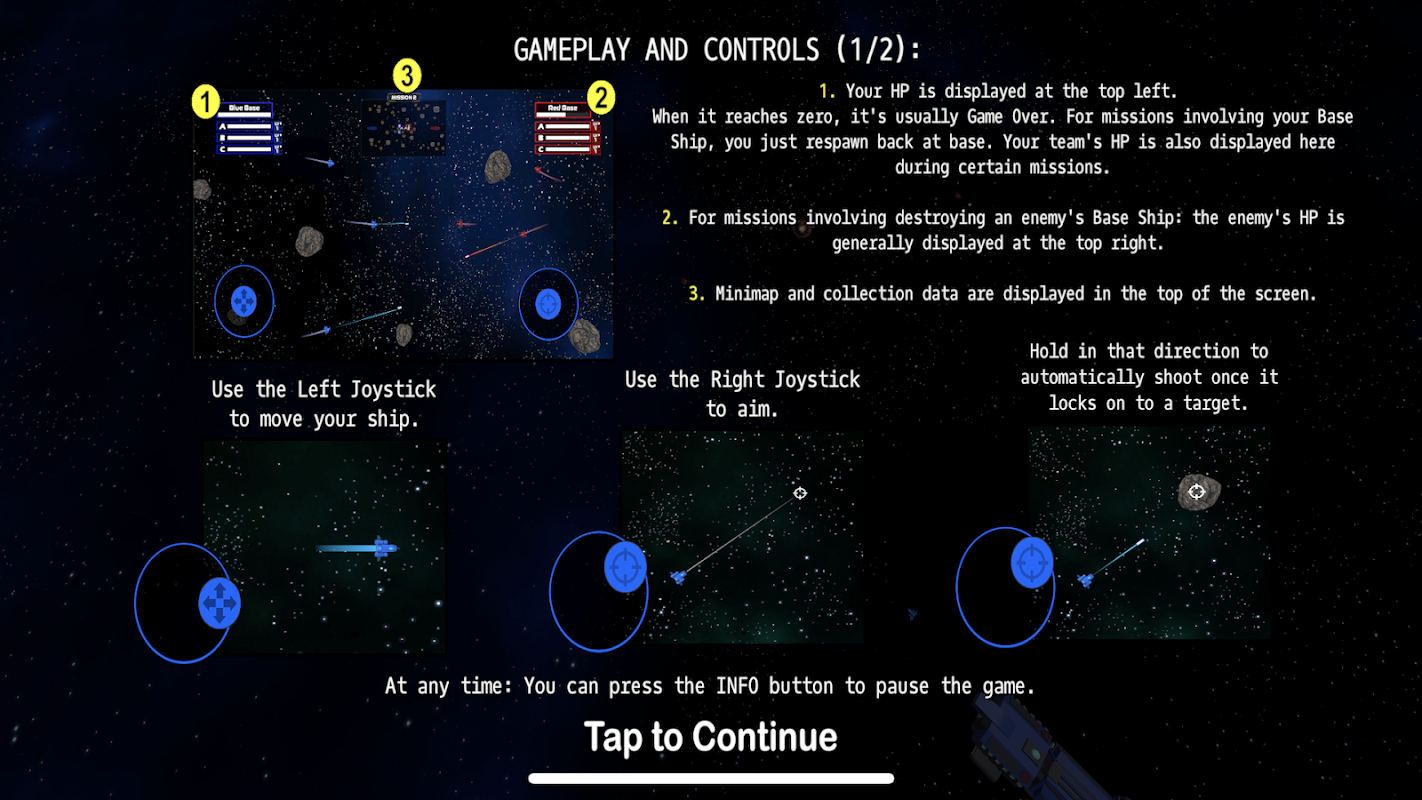 Thu thập tinh thể năng lượng, đánh bại tàu địch, tránh chướng ngại vật, bảo vệ căn cứ của bạn.