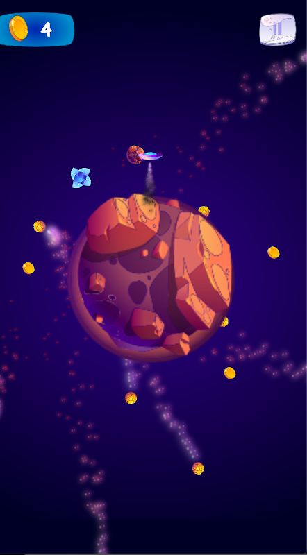 There is a little cute UFO that traveling around planets. There are obstacles and portals . Collect all the coin and travel to another planet through space. There may be cute aliens in the game for future updates.