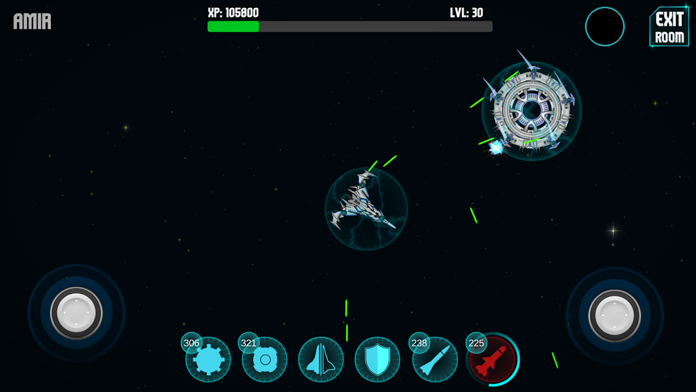 Chọn từ các giao diện và tàu vũ trụ khác nhau, sẽ liên tục được thêm vào. Đăng nhập bằng tài khoản Facebook của bạn và tiếp tục tăng cấp. Bạn đã chiến thắng mất cấp và tàu vũ trụ khi bạn chết! Tiếp tục chơi và đạt cấp 50 cho tàu vũ trụ cuối cùng! Thử thách bạn bè và đạt thứ hạng cao nhất trong trò chơi chiến đấu không gian nhiều người chơi này!