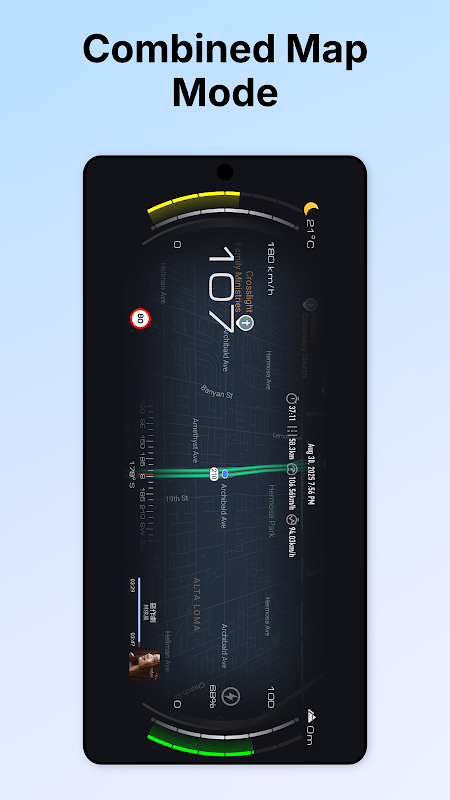 Theo dõi tốc độ theo thời gian thực, tốc độ tối đa và tốc độ trung bình của bạn một cách chính xác. Giao diện kỹ thuật số đẹp mắt cũng hiển thị mức pin của điện thoại — rất phù hợp cho các chuyến đi đường dài hoặc đi làm.