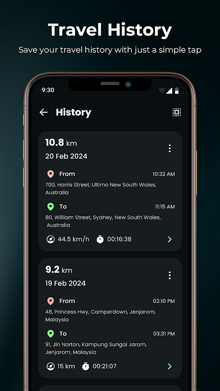 ✔️ Truy cập lịch sử hành trình của bạn để có cái nhìn tổng quan toàn diện về các chuyến đi đã qua.