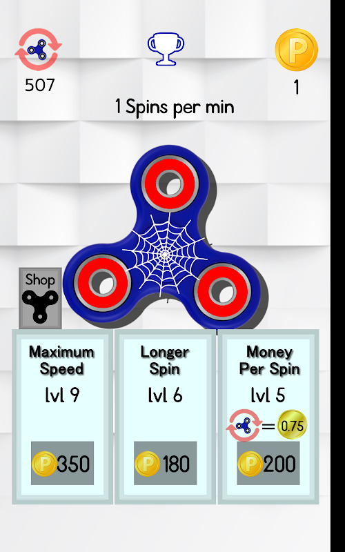 Kiếm được đồng tiền trong khi quay Spider Fidget Spinner và sử dụng đồng tiền bạn kiếm được để nâng cấp Spider Fidget Spinner để kiếm được nhiều tiền hơn