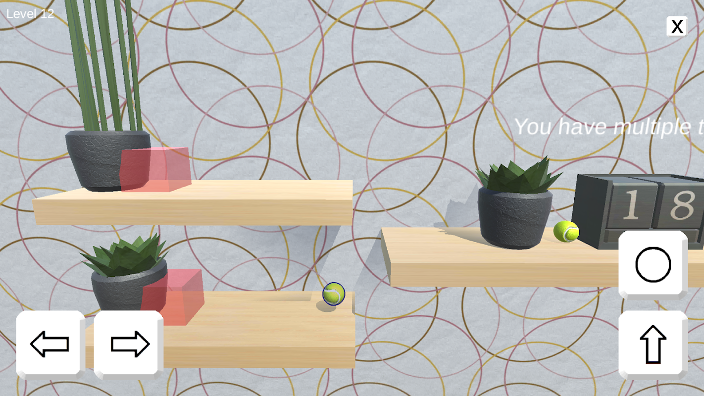 This game is a physics puzzle game! You are one or more tennis balls and you have to reach the target area. Once you are there, you have to stay for at least 3 seconds. The game takes place in a wall shelf environment.