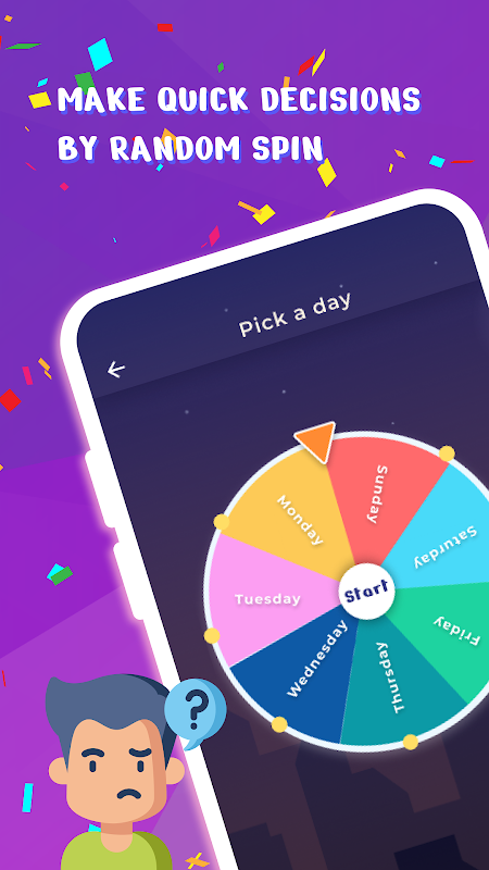 Thay vì tung xúc xắc, quay chai, quay bút, giờ đây bạn chỉ cần mở ứng dụng và quay để đưa ra quyết định công bằng nhất theo cách ngẫu nhiên nhất. Ứng dụng chọn bánh xe mang lại niềm vui và sự tiện lợi.
