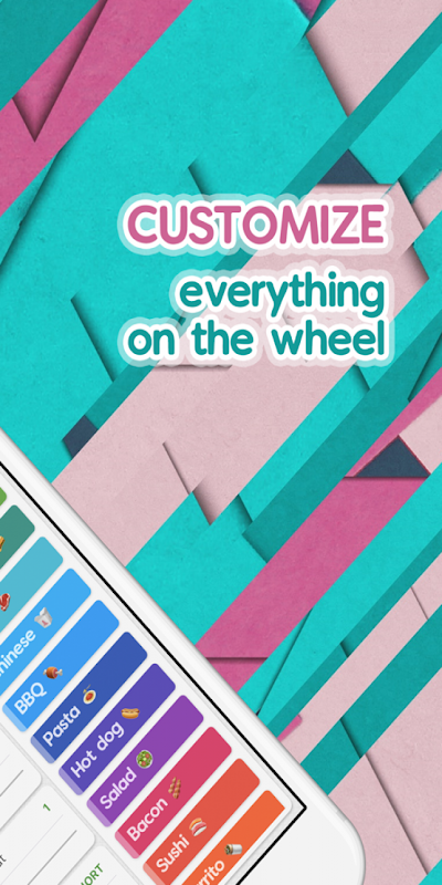 Spin The Wheel - Random Picker is an ultimate decision making fortune wheel app where you can create countless custom wheels of fortune, add as many customized labels as you want and spin away!