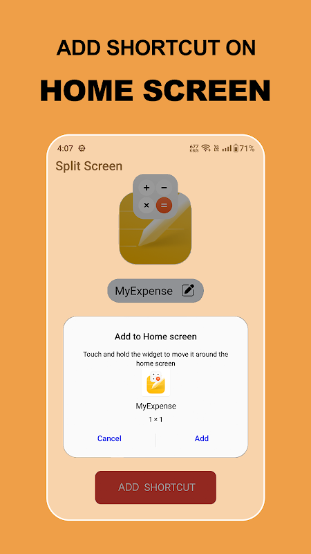 Tạo phím tắt – Tạo phím tắt trên màn hình chính cho các tổ hợp ứng dụng yêu thích của bạn - Screen Splitter cho các mục đích sử dụng hàng ngày.