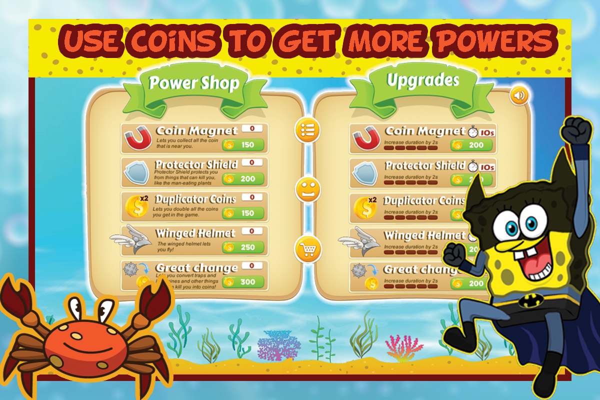 Play Sponge Bat and dash the bob krabs in a frenzy sea adventures.