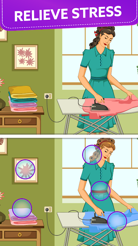 Guess the difference now! Find items in pictures and decide where the two pictures differ as quickly as you can! If you like playing mystery games, puzzle games, and other educational games, this memory booster will bring you numerous benefits! “Spot the differences” is a free brain teaser that will help you enhance your observation skills in a second. We designed our game with the aim to help you develop your cognitive skills, practice fast fingers, and have a lot of fun! both genders will love it. This game offers you exquisite graphics and intuitive gameplay!