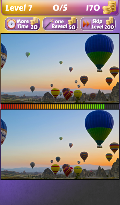 The Goal of game to find the 5 differences on two images, each time you detect a difference just tab on the screen