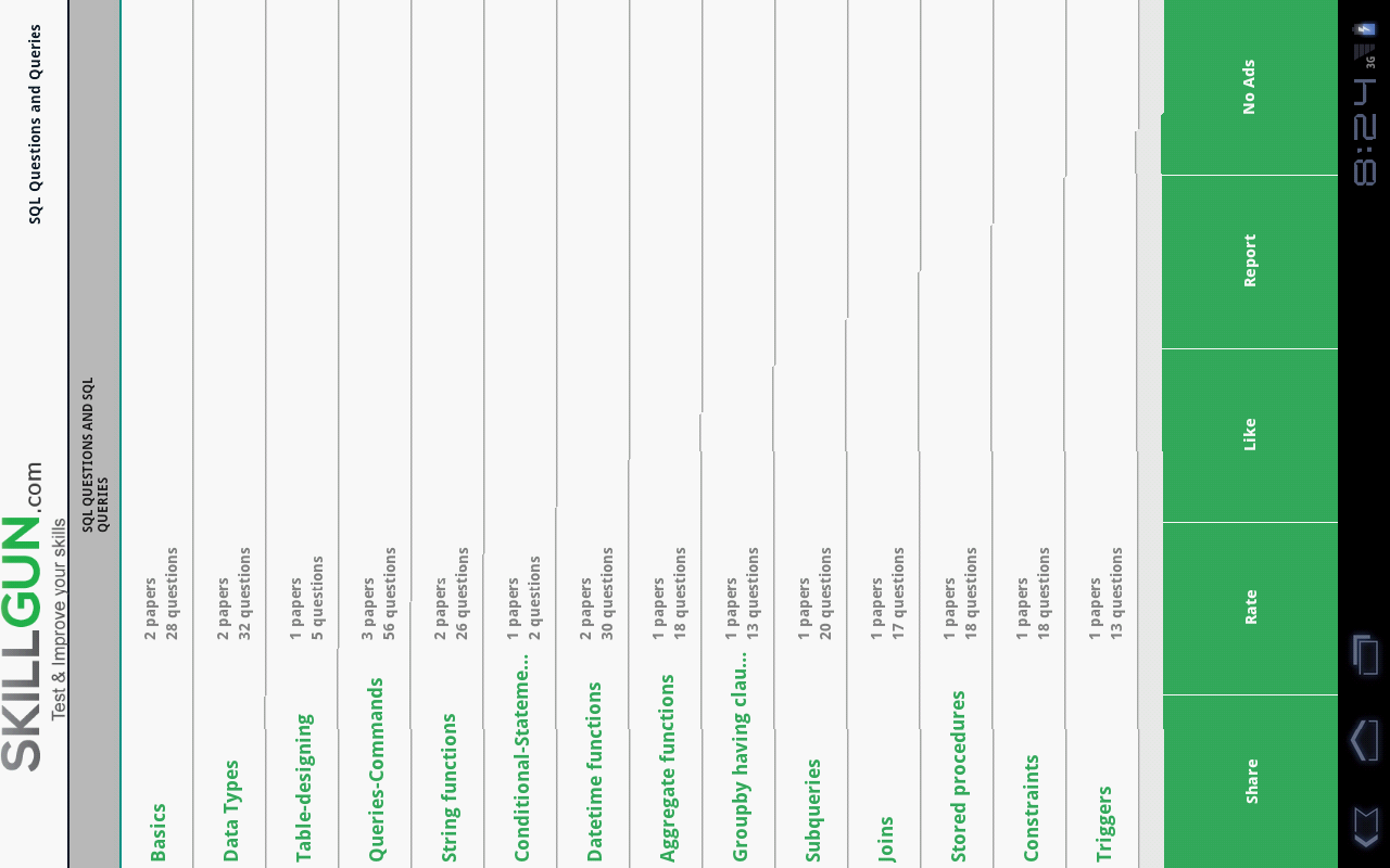 Be it any platform, developer needs knowledge on SQL basics and SQL Queries. This application is the best place to test and improve your SQL skills.