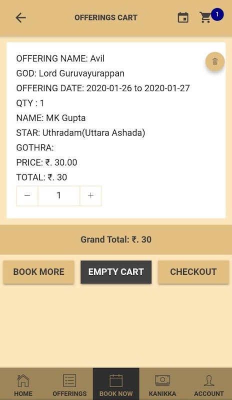 Namacharyyan muộn Br. Sree Anjam Madhavan Namboodiri, thông qua Sapthaha Yagnams khuấy động tâm hồn của mình đã truyền cảm hứng cho các tín đồ và sau đó là Thành viên Hội đồng quản lý để xây dựng Đền Sree Guruvayurappan tại Calcutta và những nỗ lực không mệt mỏi và tận tâm với Chúa đã hoàn thành vào năm 1995.
