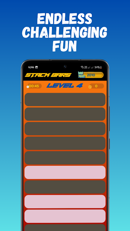 Hãy sẵn sàng vuốt, xếp chồng và chinh phục! Cài đặt Stack Bars ngay hôm nay và kiểm tra kỹ năng xếp chồng của bạn hơn bao giờ hết. Hãy nhớ rằng, bầu trời là giới hạn, vì vậy hãy bắt đầu xếp chồng ngay bây giờ!
