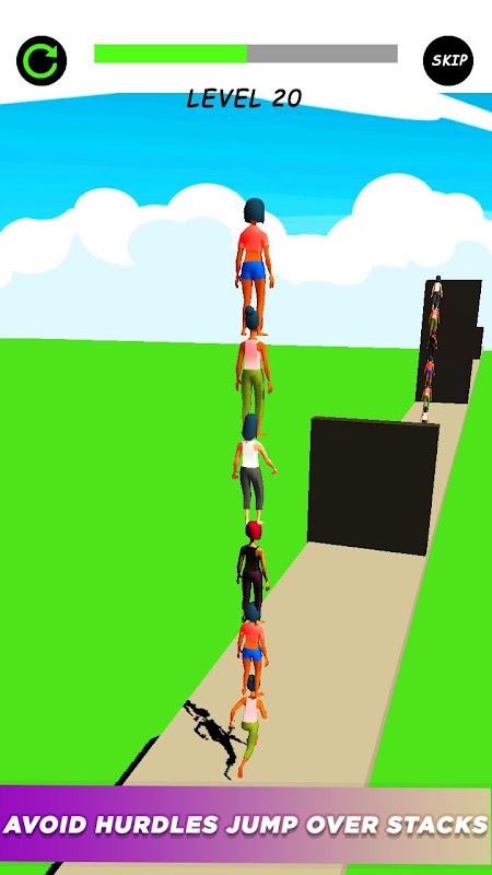 In this game, Just tap at the right moment to jump and stack to build the highest tower of humans, Run toward the finish point by jumping over the different obstacles in front of you until to reach the finish line.