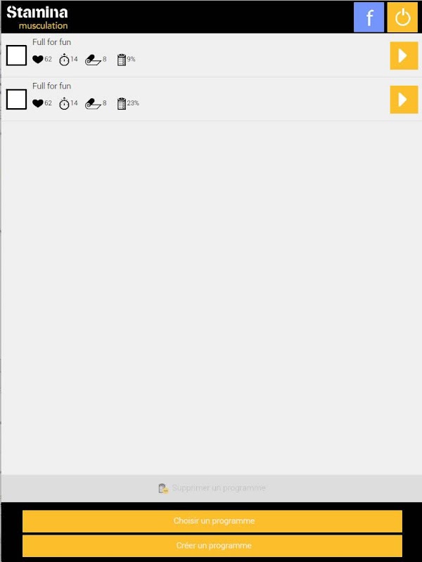 Grace à l'application Stamina vous pourrez suivre votre entrainement en musculation et ainsi voir votre progression musculaire. Suivez un programme type et vous aurez toutes les instructions et astuces de coach par rapport à chaque exercice qui se trouve dans le programme que vous avez choisis. Vous pouvez également créer votre propre programme à partir des exercices de la base de donnée stamina.