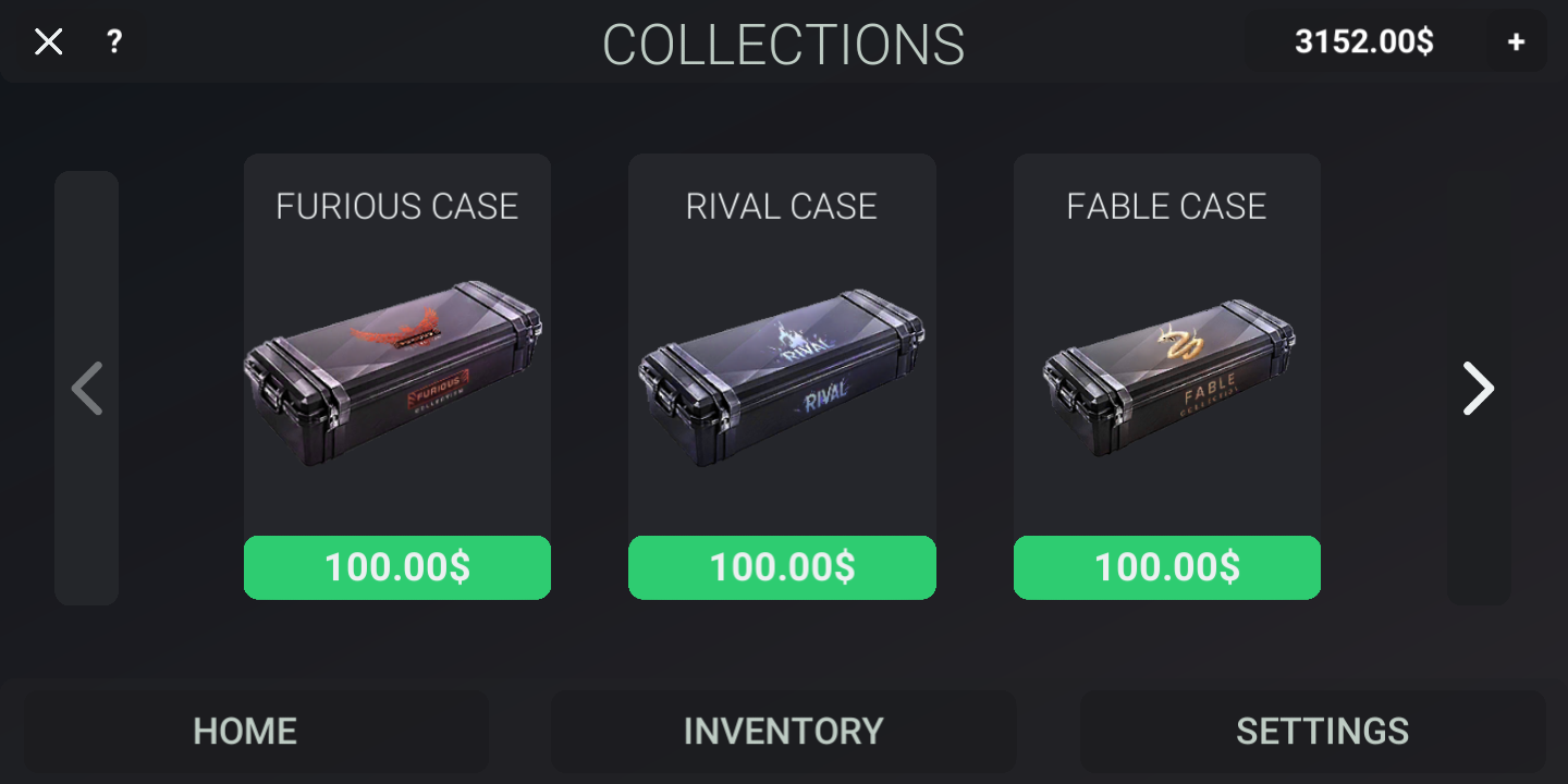 Note: This is a simulator, so no skin can appear in your original game. We made this app for fun just to spin the cases with your favorite game Standoff 2. Good luck!