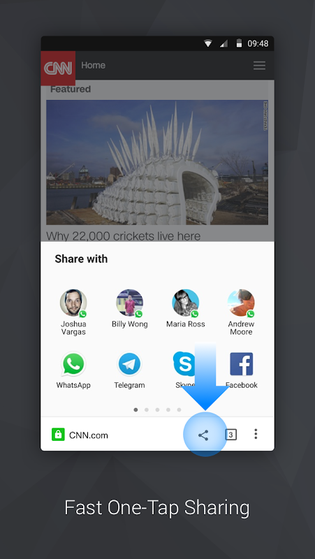 Không còn phải múa máy ngón tay khi sử dụng điện thoại bằng một tay. Tìm kiếm, điều hướng và chia sẻ một cách dễ dàng với chức năng Omnibox. Các kết quả và đề xuất sẽ xuất hiện ngay lập tức khi bạn gõ chữ, bao gồm các tìm kiếm gần đây và các trang web đã truy cập. Đến bất cứ đâu chỉ trong chớp mắt.
