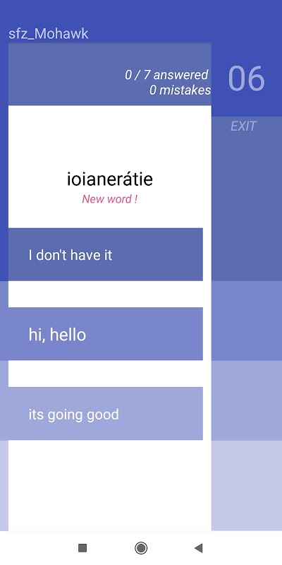 Bắt đầu lại từ đầu, 'thu thập' tối đa 9 từ Mohawk sau mỗi buổi học và học theo tốc độ của riêng bạn. Ứng dụng StartFromZero_Mohawk là một ứng dụng flashcard và câu đố thực sự đơn giản, trực quan và hiệu quả giúp bạn xây dựng vốn từ vựng Mohawk của mình bắt đầu từ hôm nay!