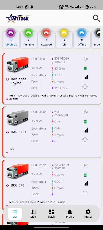 Thiết bị theo dõi StarTrack của xe có hỗ trợ GPS được lắp đặt trên mỗi xe để thu thập và truyền dữ liệu theo dõi qua mạng di động và vệ tinh, tùy theo mạng nào hoạt động tốt nhất cho hoạt động của bạn. Sau đó, thiết bị sẽ cung cấp dữ liệu cho một ứng dụng do StarTrack lưu trữ mà bạn có thể truy cập bất kỳ lúc nào qua web. Bạn sẽ nhận được thông tin cập nhật về theo dõi phương tiện theo thời gian thực, bao gồm vị trí, hướng đi, tốc độ, thời gian không tải, xuất phát/dừng, v.v., cho phép bạn quản lý lịch trình chặt chẽ hơn và đội xe hiệu quả hơn.
