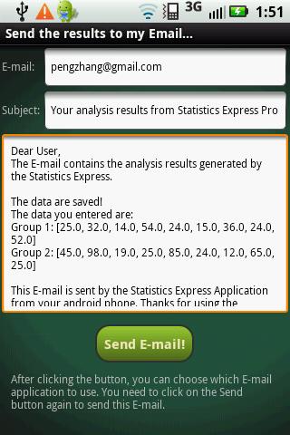 5. Users can send data and analysis results via E-mail.