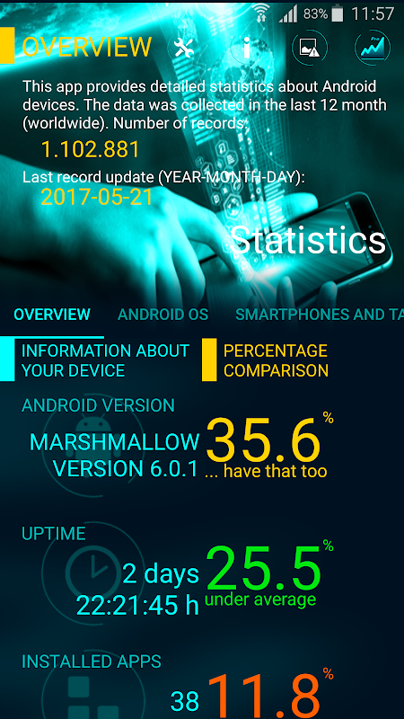Up-to-date, toàn cầu, và dữ liệu Android thống kê chi tiết.