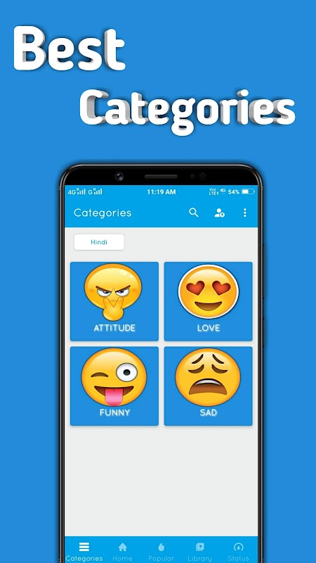 In This App You Can Download New Whatsapp Status. And Best Categoroes Of Status Like Attitude, Love, Sad And Funny Etc.