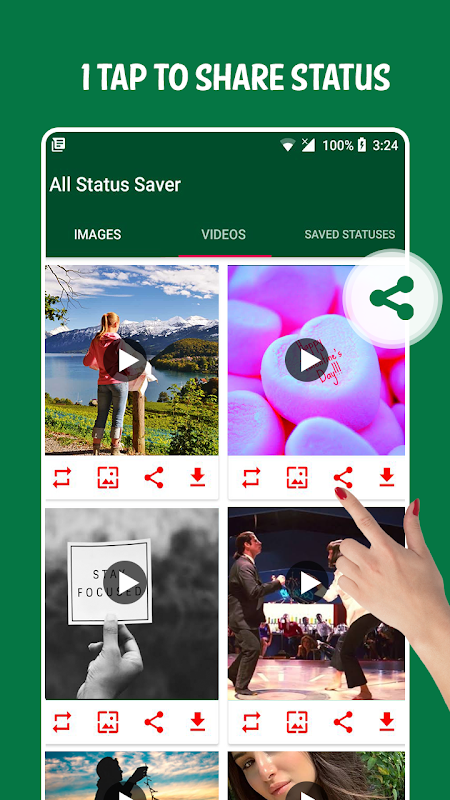Status Saver: Business Story Saver & Status Viewer là một ứng dụng Android được sử dụng để lưu trạng thái mạng xã hội cho mục đích kinh doanh. Bạn có thể chia sẻ trạng thái đã lưu. Dễ dàng đăng lại trạng thái đã lưu, chia sẻ. Ứng dụng Business Story Saver & Status Viewer cho phép bạn đặt hình ảnh trạng thái làm hình nền di động mặc định. Bạn có thể xem trạng thái lưu trên một tab riêng biệt và bạn có thể nhanh chóng xóa trạng thái đã lưu. Status Saver: Business Story Saver & Status Viewer cho phép bạn nhanh chóng xóa các trạng thái đã lưu nếu bạn muốn giải phóng một số dung lượng lưu trữ trên điện thoại di động của mình. Status Saver: Business Story Saver & Status Viewer cho phép bạn chia sẻ trạng thái của các ứng dụng mạng xã hội. Tất cả chúng ta đều biết rằng trạng thái hoặc câu chuyện của các ứng dụng mạng xã hội đang là xu hướng và rất phổ biến hiện nay. Status Saver: Business Story Saver & Status Viewer hoàn hảo cho bạn nếu bạn thích xem trạng thái trên mạng xã hội.
