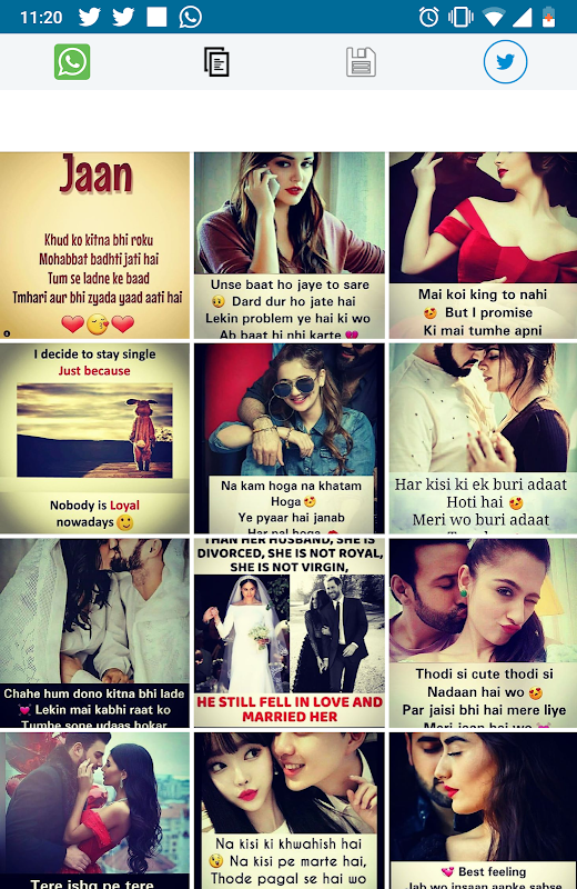 This app has good collection of shayari, profile pics, DP status and Video Status. :)