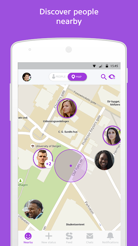 It’s up to you if you want to share your location or status with only friends or with all users nearby.
