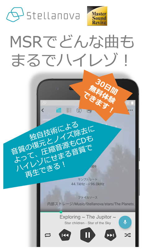 Cũng như AAC và MP3, Hi-Res như FLAC và DSD cũng có thể được phát! Bất kỳ nguồn âm thanh nào cũng có thể được phát cùng nhau trong một danh sách phát. Với MSR, bạn có thể phát lại nhạc không phải là Hi-Res với âm thanh chất lượng cao tiệm cận với Hi-Res.
