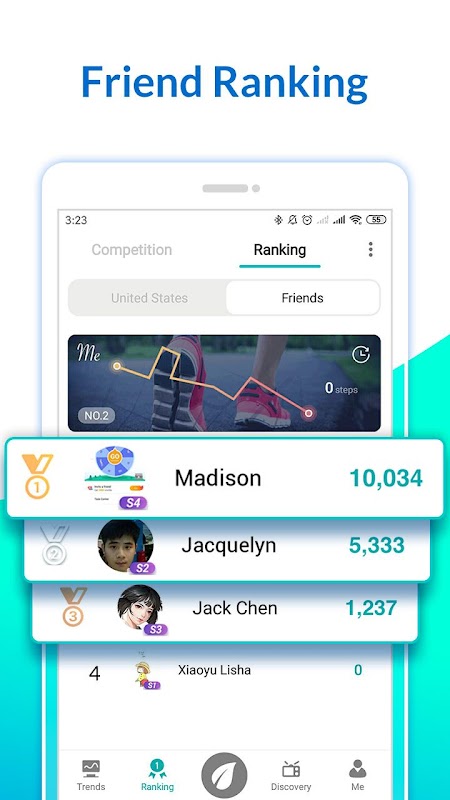 ➤Ranking daily steps, compete with your friends here, walk more and occupy your friends' cover on your pedometer. It is a free step counter that you can invite your friends to do exercise together.