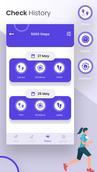 pedometer step counter app is a power-saving app to use when your screen will be off and save your battery. It is also a GPS feather that can track your distance and time with the GPS in real-time. Pedometer also maintains your data and make us weekly and monthly report graphically.