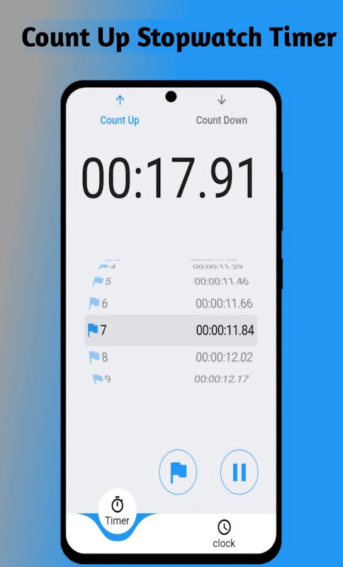 ➤ Trên màn hình chính của ứng dụng ⏱️Stopwatch Timer & ⏰world clock, bạn có thể chọn hẹn giờ bắt đầu / dừng.