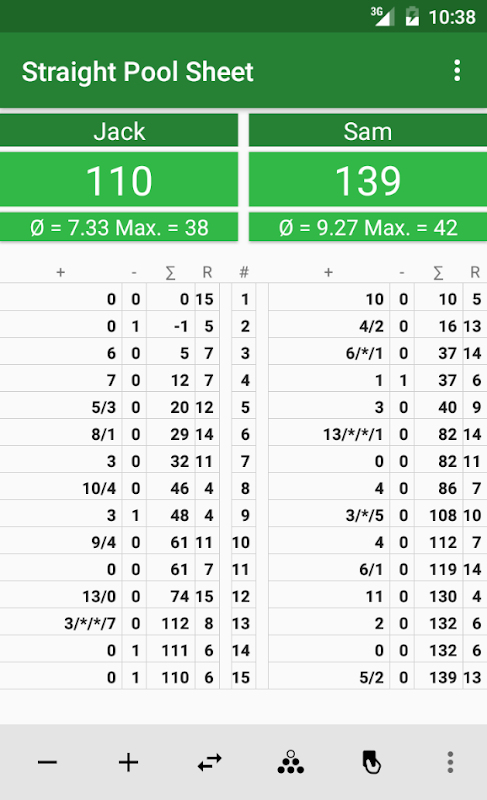 Chỉ cần nhập vào bi mục tiêu còn lại trên bàn, kệ chơi và điểm hôi. Tỉ số được tính toán tự động.