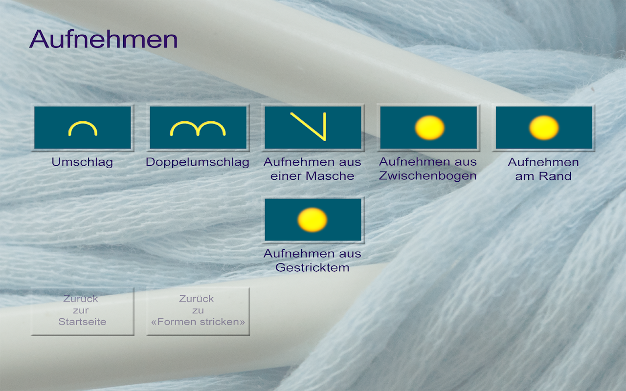Có thể lập kế hoạch cho các đối tượng đan của riêng bạn, bởi vì một mặt kiến thức về các biểu tượng đan (kịch bản đan) được đào sâu và mặt khác trong các chương như «hình dạng đan», nó cho thấy hiệu ứng nào có thể được tạo ra bằng một mũi khâu trên bề mặt.