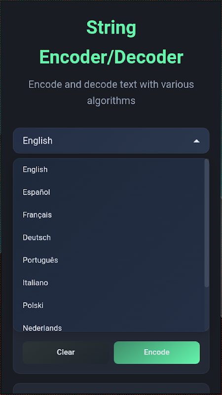 Dưới đây là các tính năng và chức năng chính được triển khai trong Bộ mã hóa/giải mã chuỗi: