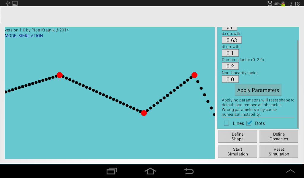 (Lúc này hình dạng chuỗi điểm sẽ được thiết lập lại để mặc định u (x) = 1,5 * sin (x) chức năng