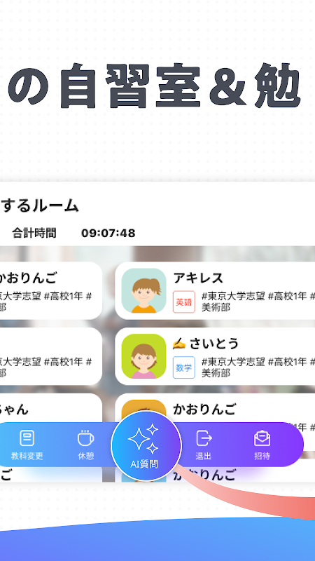 ・Trong "Phòng học theo lựa chọn", bạn có thể học tập trong cùng không gian với các học sinh trung học cơ sở và trung học phổ thông có cùng lựa chọn và mục tiêu, giúp cải thiện khả năng tập trung và cạnh tranh với nhau.
