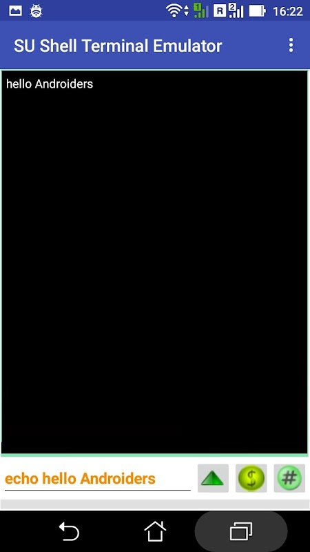 first button with $ symbol : you can run all Linux commands and save results to text file and return to the history to reduce writing , just click on the list-view of your history for run commands again .