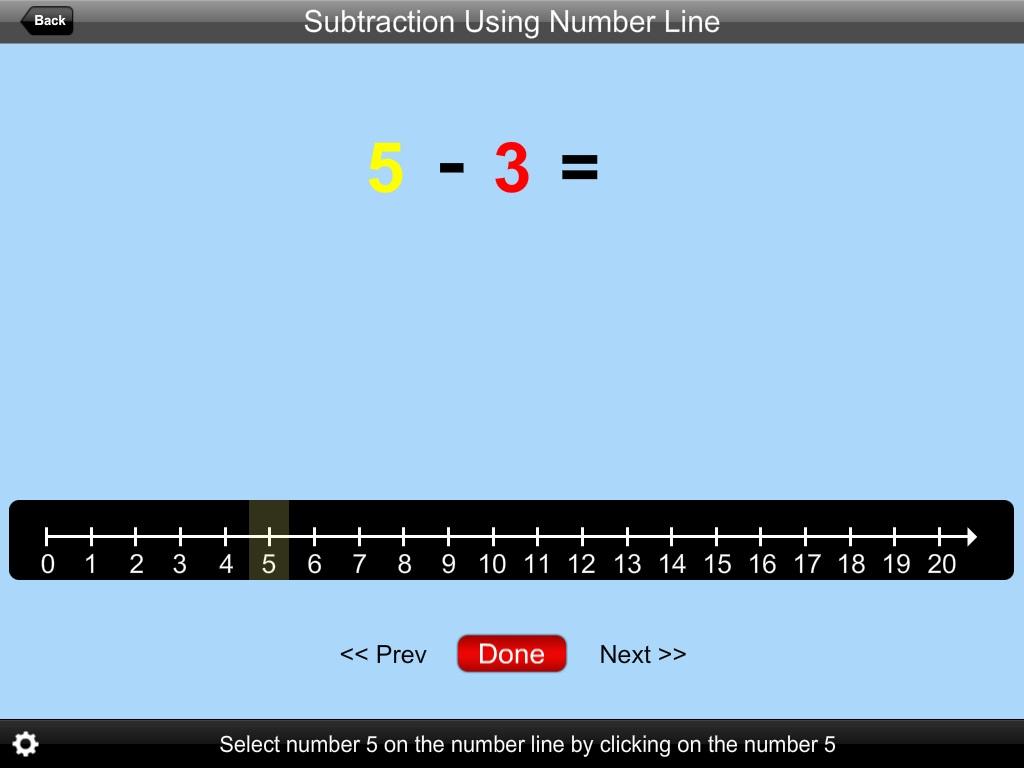 Click on the “Back” button to close “Subtraction Using Number Line” or return to the previous page.