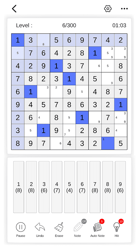 ✓Turn on Notes to make notes like you would on paper. Each time you fill in a cell on the sudoku puzzle grid, your notes are automatically updated!