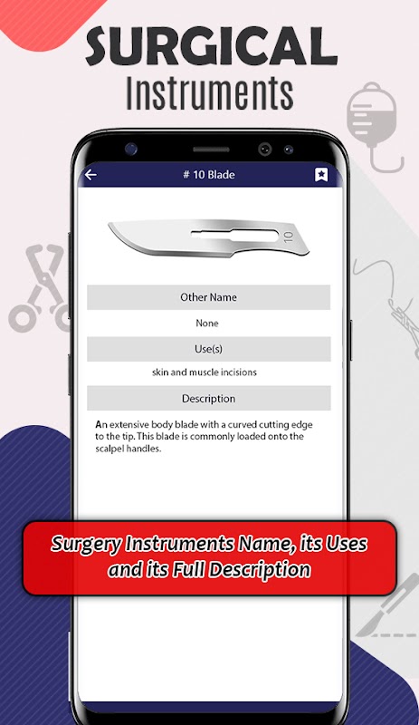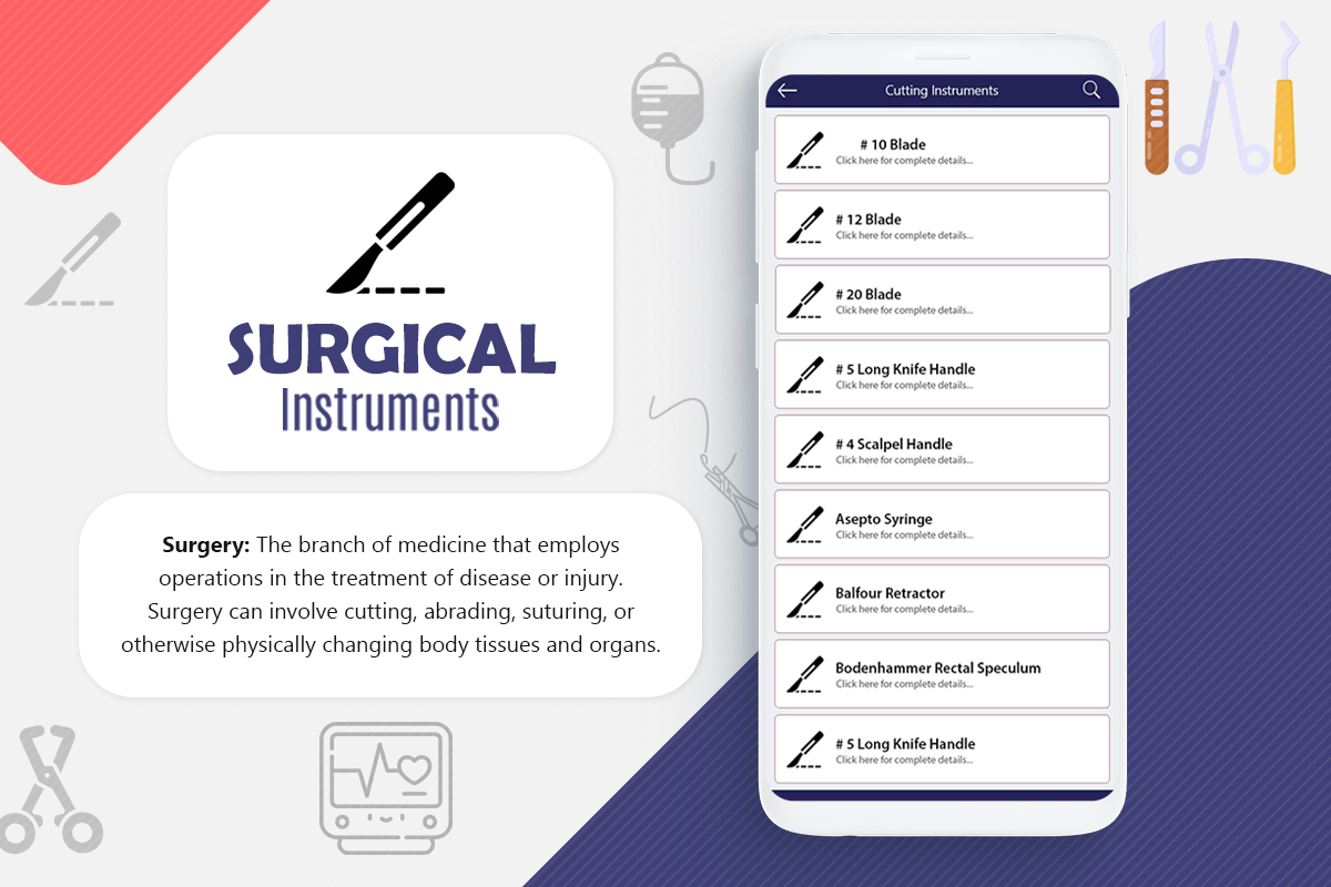 Cơ sở dữ liệu dụng cụ mở rộng: Ứng dụng của chúng tôi có một bộ sưu tập phong phú các dụng cụ phẫu thuật được sử dụng trong các chuyên khoa y tế khác nhau, bao gồm phẫu thuật tổng quát, chỉnh hình, phụ khoa, phẫu thuật thần kinh, v.v.