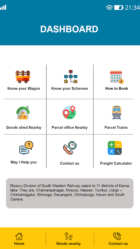 Đường sắt Ấn Độ đã đưa ra nhiều phương án có lợi cho những người có ý định vận chuyển bằng đường sắt. Chi tiết về các chương trình vận chuyển hàng hóa như vậy, những gì phù hợp nhất với một khách hàng / hàng hóa / điểm đến cụ thể có thể được xác định từ ứng dụng này. Tất nhiên, một nhóm chuyên dụng có sẵn để hướng dẫn