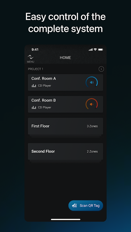 Kết nối với hệ thống bằng cách quét mạng trong Trang chủ hoặc chỉ cần chạm vào nút Quét thẻ QR để mở giao diện điều khiển.