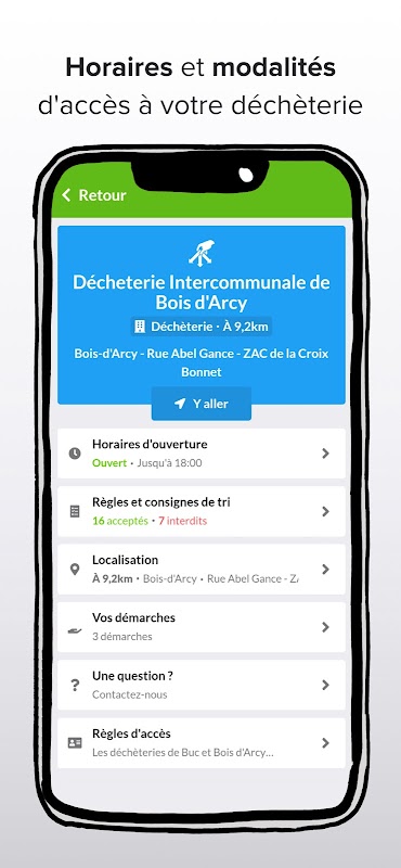 Ứng dụng Mes Déchets - Versailles Grand Parc là ứng dụng chính thức mới cho các dịch vụ xử lý chất thải của bạn! Nó liệt kê tất cả thông tin bạn cần để phân loại chất thải, tùy thuộc vào địa chỉ của bạn: lịch trình thu gom được cá nhân hóa, vị trí và sự sẵn có của các điểm thu gom gần đó, thời gian biểu và thông tin thực tế về các trung tâm thu gom chất thải, hướng dẫn phân loại và hơn thế nữa.