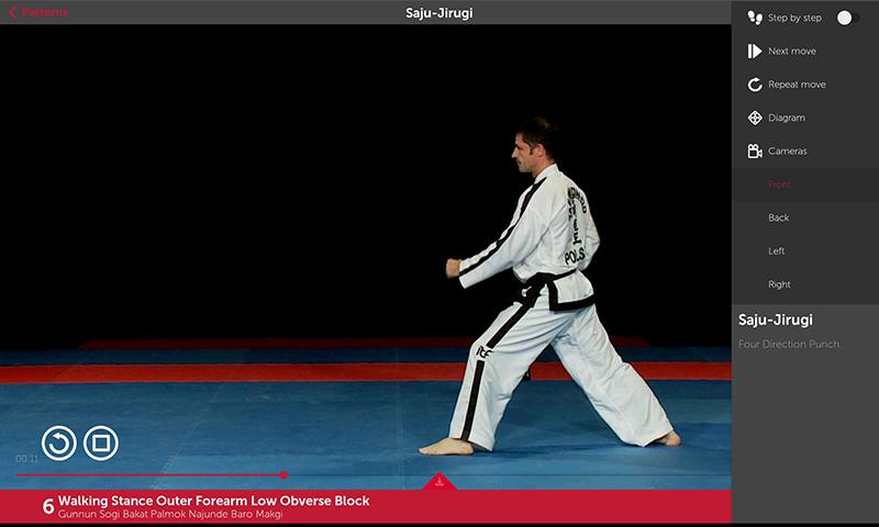 Tất cả 24 mẫu cộng với Saju- Jirugi và Saju-Makgi. Mỗi mẫu có thể được xem từ bốn góc, với tùy chọn chuyển động từng bước và lặp lại. Mọi chuyển động đều được mô tả bằng tiếng Hàn và tiếng Anh. Sơ đồ và mô tả cho mọi mẫu. Dễ làm theo, dễ sử dụng trong nhà hoặc dojang của bạn.