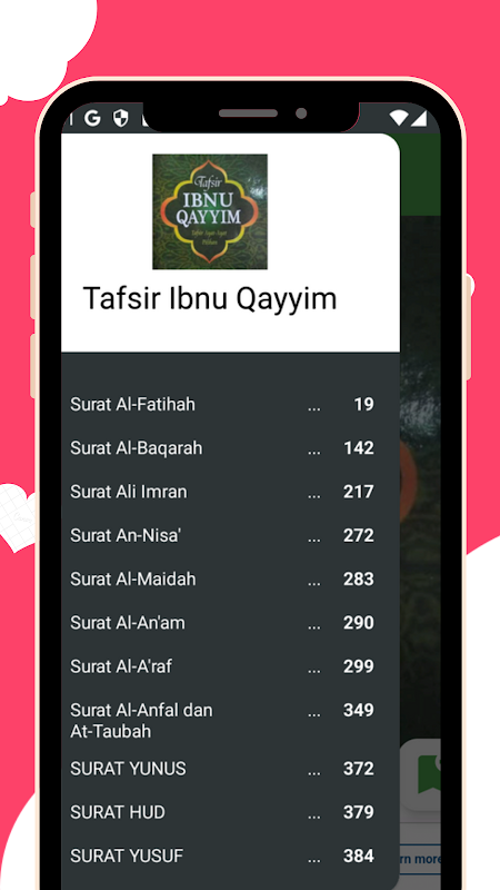 Ứng dụng Tafsir Ibnu Qayyim là một hướng dẫn toàn diện trình bày các tác phẩm tafsir chuyên sâu của Shaykh Muhammad Uwain An-Nadwy. Dựa trên suy nghĩ và cách giải thích của học giả vĩ đại Ibnu Qayyim Al-Jauziyyah, ứng dụng này được thiết kế để giúp người Hồi giáo hiểu được ý nghĩa của các câu thơ trong Kinh Koran bằng cách tiếp cận sâu sắc và phù hợp.