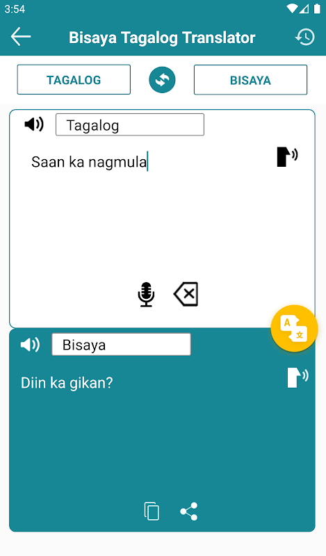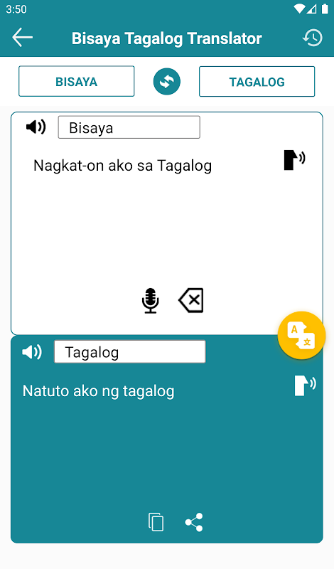 * Ứng dụng dịch này hoàn toàn miễn phí. Bạn có thể dịch các từ và câu theo cả hai cách, từ Bisaya sang Tagalog và từ Tagalog sang Bisaya. Ứng dụng dịch hữu ích này cung cấp các bản dịch nhanh chóng và chính xác.