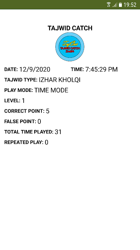 Tajwid Catch được thiết kế để giúp người chơi nhớ đúng các chữ cái cho từng loại tajwid. Trò chơi tajwid này miễn phí và sẽ bao gồm các quy tắc của Noon Sakin và Tanween. Trò chơi cũng không có bất kỳ quảng cáo nào.